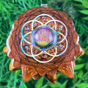 Our handmade pendants are crafted from sustainably wild-gathered Knobcone Pinecones. Every Aura Pinecone is carefully dried, aged, and cross-sectioned before being meticulously designed.