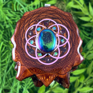Our handmade pendants are crafted from sustainably wild-gathered Knobcone Pinecones. Every Aura Pinecone is carefully dried, aged, and cross-sectioned before being meticulously designed.