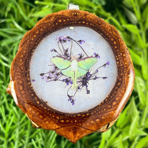 Our handmade pendants are crafted from sustainably wild-gathered Knobcone Pinecones. Every Aura Pinecone is carefully dried, aged, and cross-sectioned before being meticulously designed.