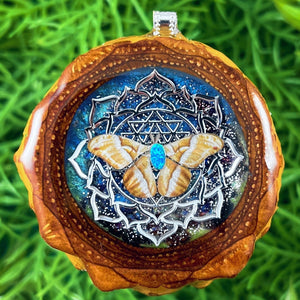 Our handmade pendants are crafted from sustainably wild-gathered Knobcone Pinecones. Every Aura Pinecone is carefully dried, aged, and cross-sectioned before being meticulously designed.