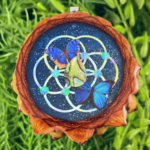 Our handmade pendants are crafted from sustainably wild-gathered Knobcone Pinecones. Every Aura Pinecone is carefully dried, aged, and cross-sectioned before being meticulously designed.