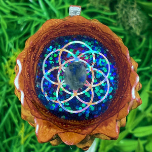 Our handmade pendants are crafted from sustainably wild-gathered Knobcone Pinecones. Every Aura Pinecone is carefully dried, aged, and cross-sectioned before being meticulously designed.