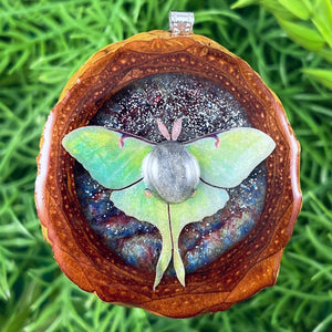 Our handmade pendants are crafted from sustainably wild-gathered Knobcone Pinecones. Every Aura Pinecone is carefully dried, aged, and cross-sectioned before being meticulously designed.