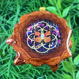 Our handmade pendants are crafted from sustainably wild-gathered Knobcone Pinecones. Every Aura Pinecone is carefully dried, aged, and cross-sectioned before being meticulously designed.