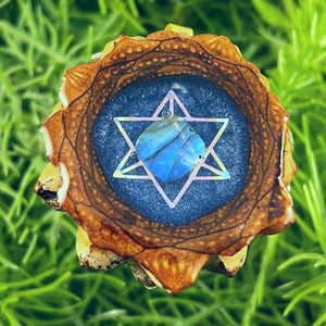Our handmade pendants are crafted from sustainably wild-gathered Knobcone Pinecones. Every Aura Pinecone is carefully dried, aged, and cross-sectioned before being meticulously designed.