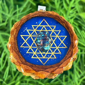 Our handmade pendants are crafted from sustainably wild-gathered Knobcone Pinecones. Every Aura Pinecone is carefully dried, aged, and cross-sectioned before being meticulously designed.