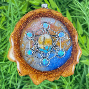 Galaxy with Dichroic Glass & Opal with Seed of Life