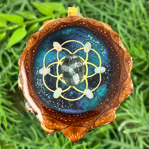 Our handmade pendants are crafted from sustainably wild-gathered Knobcone Pinecones. Every Aura Pinecone is carefully dried, aged, and cross-sectioned before being meticulously designed.