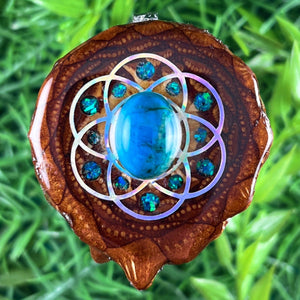 Our handmade pendants are crafted from sustainably wild-gathered Knobcone Pinecones. Every Aura Pinecone is carefully dried, aged, and cross-sectioned before being meticulously designed.