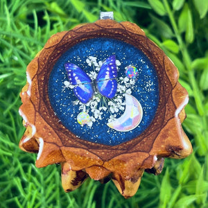 Our handmade pendants are crafted from sustainably wild-gathered Knobcone Pinecones. Every Aura Pinecone is carefully dried, aged, and cross-sectioned before being meticulously designed.