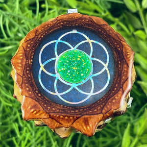 Our handmade pendants are crafted from sustainably wild-gathered Knobcone Pinecones. Every Aura Pinecone is carefully dried, aged, and cross-sectioned before being meticulously designed.