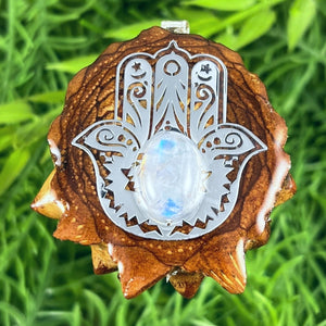 Our handmade pendants are crafted from sustainably wild-gathered Knobcone Pinecones. Every Aura Pinecone is carefully dried, aged, and cross-sectioned before being meticulously designed.