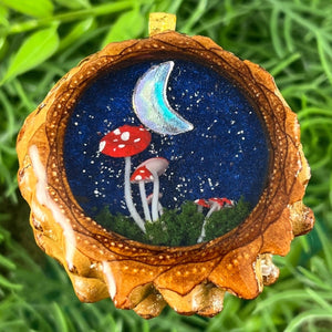 Our handmade pendants are crafted from sustainably wild-gathered Knobcone Pinecones. Every Aura Pinecone is carefully dried, aged, and cross-sectioned before being meticulously designed.