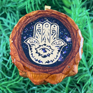 Our handmade pendants are crafted from sustainably wild-gathered Knobcone Pinecones. Every Aura Pinecone is carefully dried, aged, and cross-sectioned before being meticulously designed.