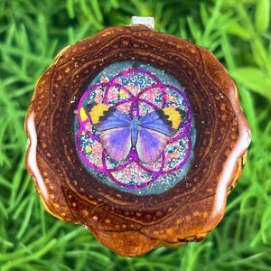 Our handmade pendants are crafted from sustainably wild-gathered Knobcone Pinecones. Every Aura Pinecone is carefully dried, aged, and cross-sectioned before being meticulously designed.