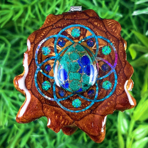 Our handmade pendants are crafted from sustainably wild-gathered Knobcone Pinecones. Every Aura Pinecone is carefully dried, aged, and cross-sectioned before being meticulously designed.