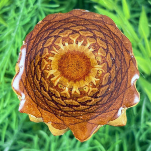 Our handmade pendants are crafted from sustainably wild-gathered Knobcone Pinecones. Every Aura Pinecone is carefully dried, aged, and cross-sectioned before being meticulously designed.