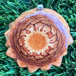 Our handmade pendants are crafted from sustainably wild-gathered Knobcone Pinecones. Every Aura Pinecone is carefully dried, aged, and cross-sectioned before being meticulously designed.