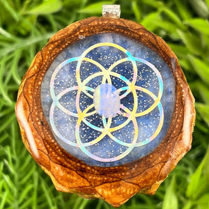 Our handmade pendants are crafted from sustainably wild-gathered Knobcone Pinecones. Every Aura Pinecone is carefully dried, aged, and cross-sectioned before being meticulously designed.