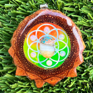 Our handmade pendants are crafted from sustainably wild-gathered Knobcone Pinecones. Every Aura Pinecone is carefully dried, aged, and cross-sectioned before being meticulously designed.