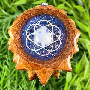 Galaxy with Moonstone and Opal & Seed of Life