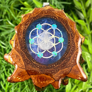 Our handmade pendants are crafted from sustainably wild-gathered Knobcone Pinecones. Every Aura Pinecone is carefully dried, aged, and cross-sectioned before being meticulously designed.