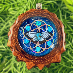 Our handmade pendants are crafted from sustainably wild-gathered Knobcone Pinecones. Every Aura Pinecone is carefully dried, aged, and cross-sectioned before being meticulously designed.