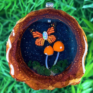 Our handmade pendants are crafted from sustainably wild-gathered Knobcone Pinecones. Every Aura Pinecone is carefully dried, aged, and cross-sectioned before being meticulously designed.