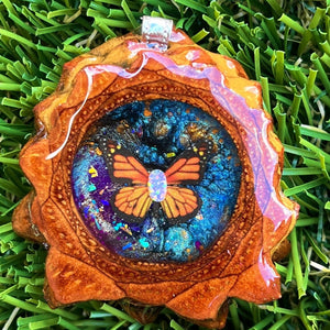 Our handmade pendants are crafted from sustainably wild-gathered Knobcone Pinecones. Every Aura Pinecone is carefully dried, aged, and cross-sectioned before being meticulously designed.