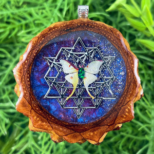 Our handmade pendants are crafted from sustainably wild-gathered Knobcone Pinecones. Every Aura Pinecone is carefully dried, aged, and cross-sectioned before being meticulously designed.
