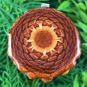Our handmade pendants are crafted from sustainably wild-gathered Knobcone Pinecones. Every Aura Pinecone is carefully dried, aged, and cross-sectioned before being meticulously designed.
