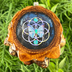 Our handmade pendants are crafted from sustainably wild-gathered Knobcone Pinecones. Every Aura Pinecone is carefully dried, aged, and cross-sectioned before being meticulously designed.