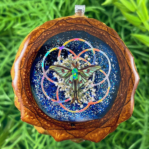 Our handmade pendants are crafted from sustainably wild-gathered Knobcone Pinecones. Every Aura Pinecone is carefully dried, aged, and cross-sectioned before being meticulously designed.