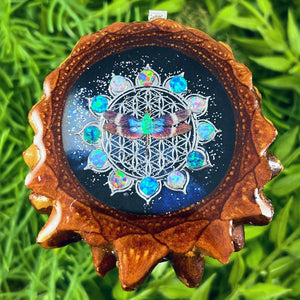 Our handmade pendants are crafted from sustainably wild-gathered Knobcone Pinecones. Every Aura Pinecone is carefully dried, aged, and cross-sectioned before being meticulously designed.