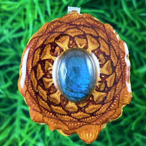 Our handmade pendants are crafted from sustainably wild-gathered Knobcone Pinecones. Every Aura Pinecone is carefully dried, aged, and cross-sectioned before being meticulously designed.