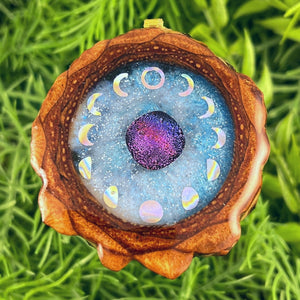 Our handmade pendants are crafted from sustainably wild-gathered Knobcone Pinecones. Every Aura Pinecone is carefully dried, aged, and cross-sectioned before being meticulously designed.