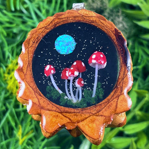 Our handmade pendants are crafted from sustainably wild-gathered Knobcone Pinecones. Every Aura Pinecone is carefully dried, aged, and cross-sectioned before being meticulously designed.