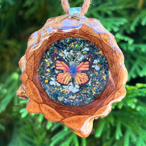 Our handmade pendants are crafted from sustainably wild-gathered Knobcone Pinecones. Every Aura Pinecone is carefully dried, aged, and cross-sectioned before being meticulously designed.