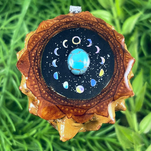 Our handmade pendants are crafted from sustainably wild-gathered Knobcone Pinecones. Every Aura Pinecone is carefully dried, aged, and cross-sectioned before being meticulously designed.