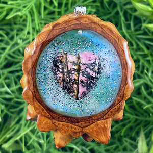 Our handmade pendants are crafted from sustainably wild-gathered Knobcone Pinecones. Every Aura Pinecone is carefully dried, aged, and cross-sectioned before being meticulously designed.