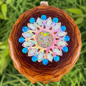 Our handmade pendants are crafted from sustainably wild-gathered Knobcone Pinecones. Every Aura Pinecone is carefully dried, aged, and cross-sectioned before being meticulously designed.