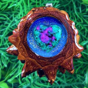 Our handmade pendants are crafted from sustainably wild-gathered Knobcone Pinecones. Every Aura Pinecone is carefully dried, aged, and cross-sectioned before being meticulously designed.
