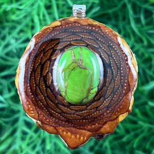 Our handmade pendants are crafted from sustainably wild-gathered Knobcone Pinecones. Every Aura Pinecone is carefully dried, aged, and cross-sectioned before being meticulously designed.