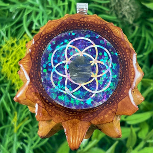 Our handmade pendants are crafted from sustainably wild-gathered Knobcone Pinecones. Every Aura Pinecone is carefully dried, aged, and cross-sectioned before being meticulously designed.
