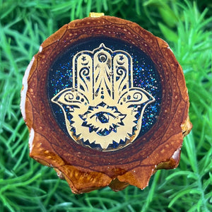 Our handmade pendants are crafted from sustainably wild-gathered Knobcone Pinecones. Every Aura Pinecone is carefully dried, aged, and cross-sectioned before being meticulously designed.