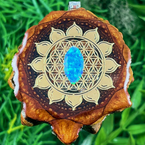 Our handmade pendants are crafted from sustainably wild-gathered Knobcone Pinecones. Every Aura Pinecone is carefully dried, aged, and cross-sectioned before being meticulously designed.