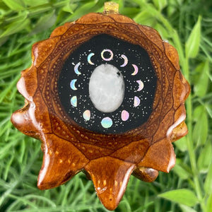 Our handmade pendants are crafted from sustainably wild-gathered Knobcone Pinecones. Every Aura Pinecone is carefully dried, aged, and cross-sectioned before being meticulously designed.