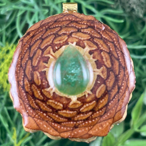 Our handmade pendants are crafted from sustainably wild-gathered Knobcone Pinecones. Every Aura Pinecone is carefully dried, aged, and cross-sectioned before being meticulously designed.