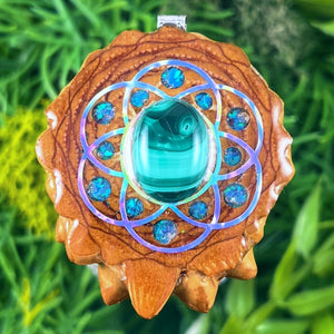 Our handmade pendants are crafted from sustainably wild-gathered Knobcone Pinecones. Every Aura Pinecone is carefully dried, aged, and cross-sectioned before being meticulously designed.