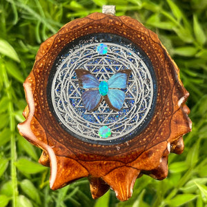 Our handmade pendants are crafted from sustainably wild-gathered Knobcone Pinecones. Every Aura Pinecone is carefully dried, aged, and cross-sectioned before being meticulously designed.